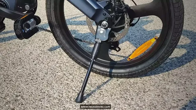 A bordo troviamo un motore da 250 watt, il quale è posizionato nella ruota posteriore, ed è in grado di raggiungere unavelocità massima di 25 km/h.